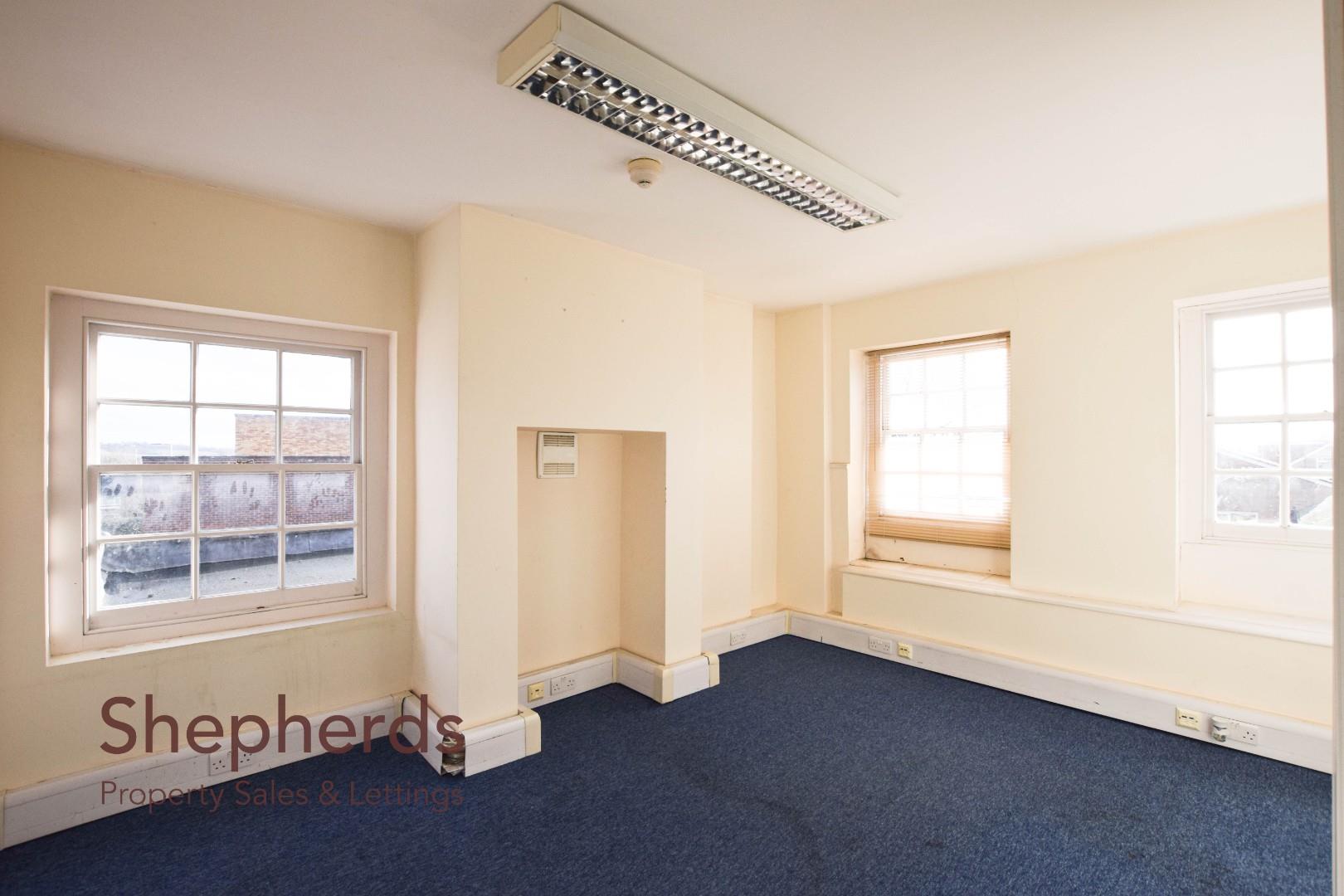OFFICE SUITE TO LET Top Floor Suite within walking distance of the High Street in Cheshunt with access to the A10 and off street Parking. There are shared toilets, and kitchenette. Gas central heating.
