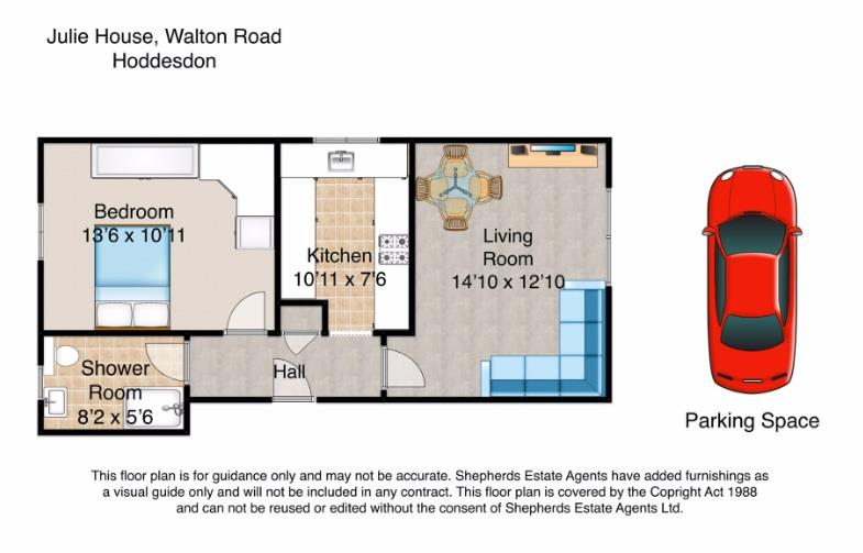 Nestled on Walton Road in the charming town of Hoddesdon, this immaculately maintained first-floor flat offers a perfect blend of comfort and convenience. Spanning 490 square feet, the property features one spacious double bedroom, a well-appointed reception room, and a modern bathroom, making it an ideal choice for individuals or couples seeking a tranquil living space.